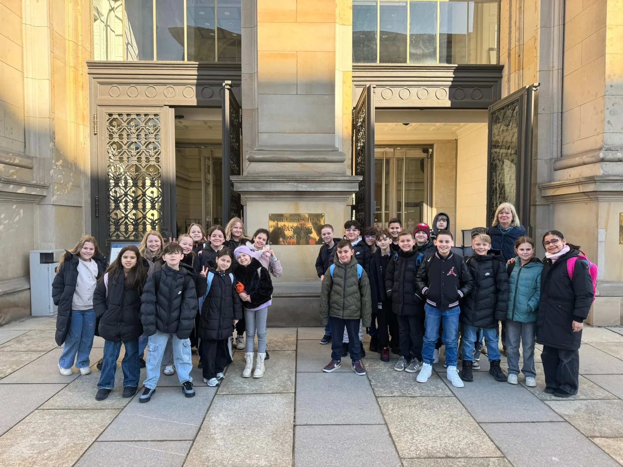 Am Montag, den 02.03.2026, hat meine Klasse (4b) einen Ausflug in das Abgeordnetenhaus gemacht. Dort beschließen Abgeordnete Regeln und Gesetze für Berlin. Wir durften mit dem Reisebus fahren, so mussten wir nicht umsteigen und konnten Berlins Sehenswürdigkeiten bestaunen. Vor dem Abgeordnetenhaus stand eine große Statue vom Freiherrn vom Stein, die uns sehr gefallen hat.