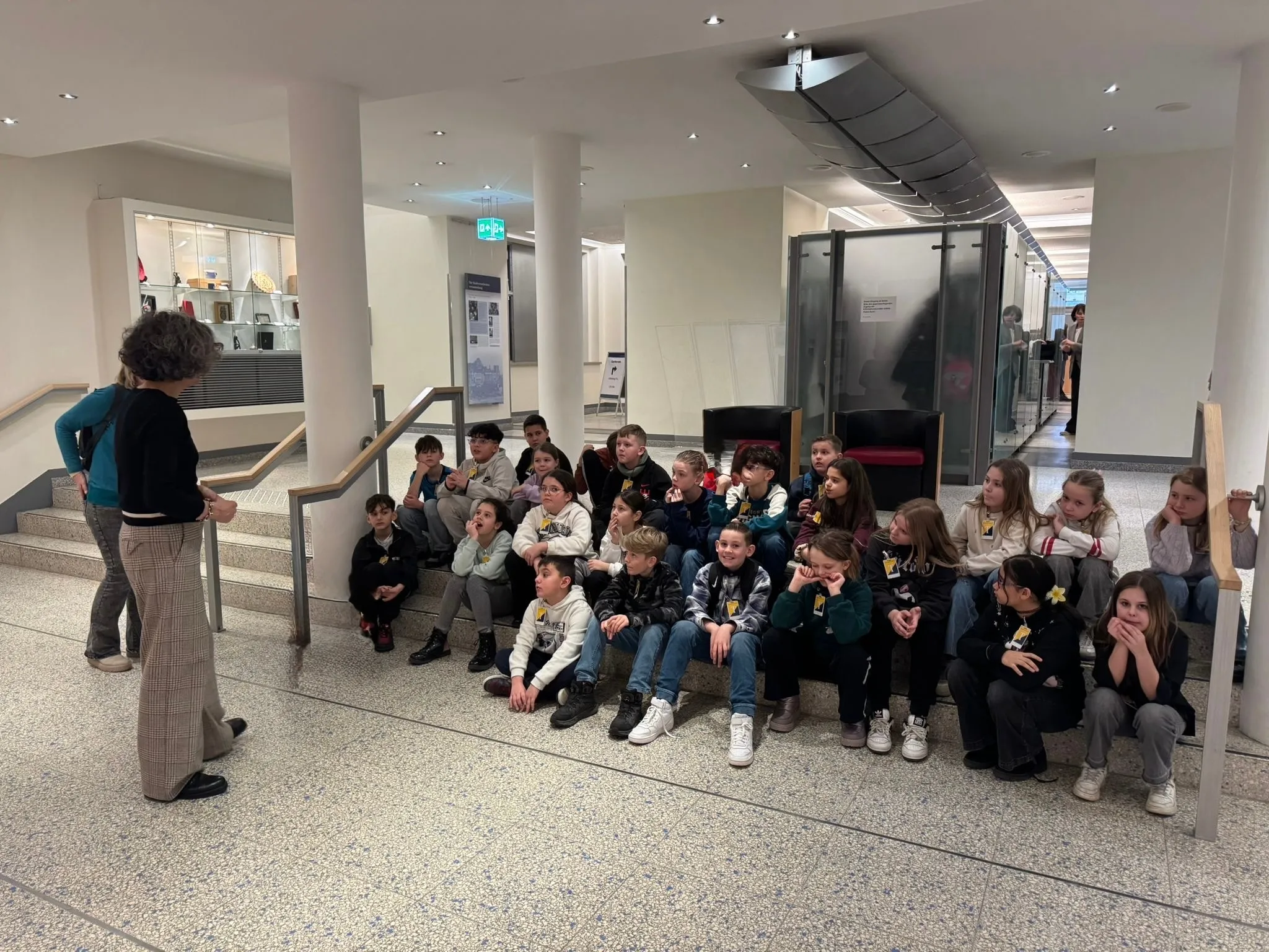 Vor Ort angekommen, erhielten alle Besucherausweise und durften zunächst das beeindruckende Erdgeschoss erkunden. Besonders die hohen Decken und die monumentalen Treppen sorgten für Staunen. Bei einer spannenden Führung lernten die Kinder, wie der Arbeitsalltag der Berliner Politiker aussieht. Tatsächlich begegneten uns auf den Fluren sogar einige bekannte Gesichter aus dem Fernsehen!